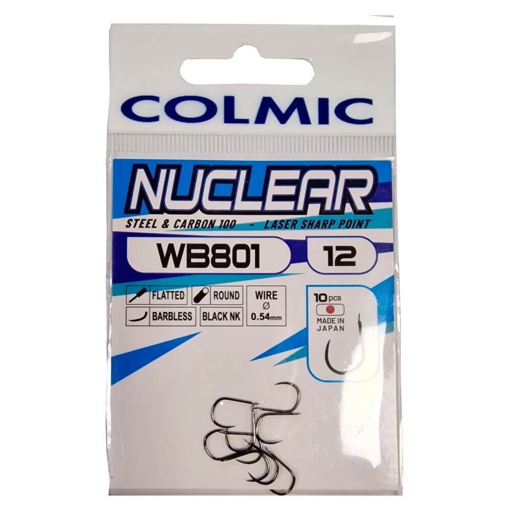 Ami Colmic WB801 NUCLEAR barbless con finitura black nickel. Perfetti per carpodromo e pesca con mais, pellet, vermi e bigattini. Confezione da 10 pezzi.